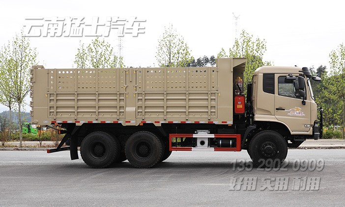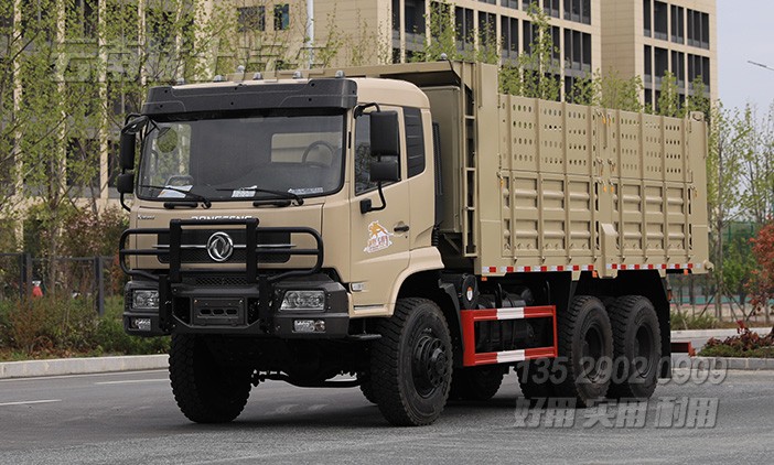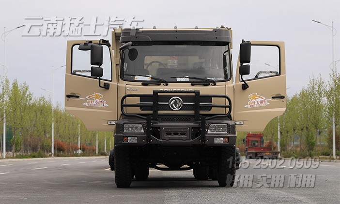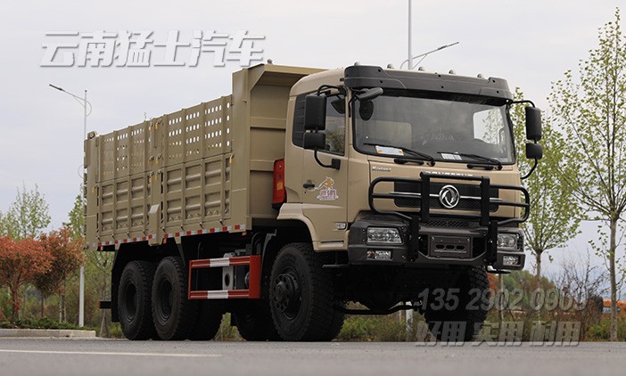東風六驅25噸越野自卸卡車,采用260馬力發(fā)動機,分時全驅,舉升油缸前置,貨箱欄板加高。適合林區(qū)運輸木材,工地運輸砂土,礦區(qū)運輸礦石。