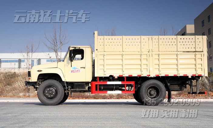 EQ1093F是東風(fēng)公司開發(fā)的一款四驅(qū)越野型載貨車,我公司為滿足客戶需求,在多方位測試后將該車貨箱進(jìn)行了改造,屬于EQ1093的升級款。貨箱加長加高,可以裝載更多的貨物。