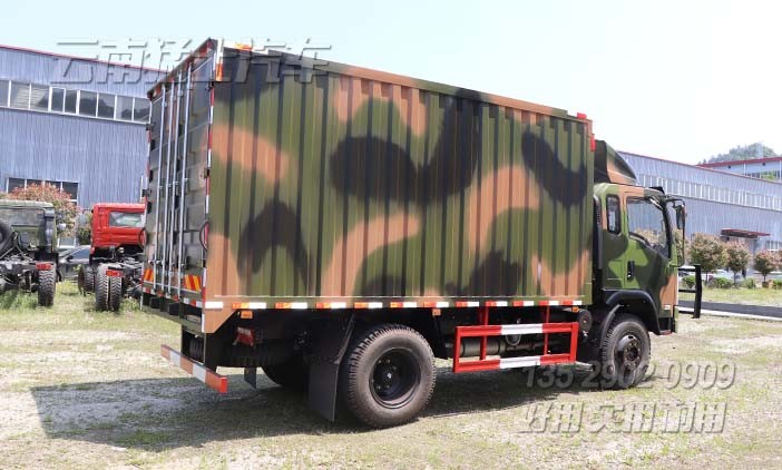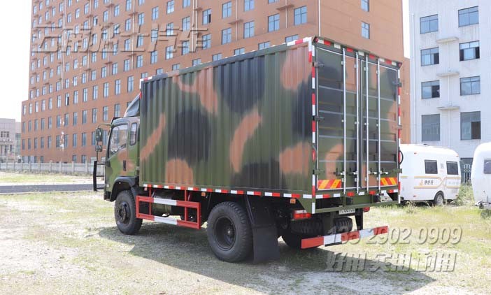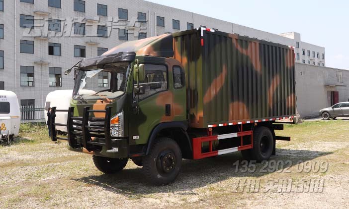 四驅(qū)D912越野廂式車(chē)采用東風(fēng)D912平頭一排半駕駛室,配備康明斯170馬力柴油發(fā)動(dòng)機(jī),前橋2.7噸后橋7噸,分時(shí)四驅(qū),越野性能優(yōu)秀,適合在路況惡劣地區(qū)行駛。廂體采用瓦楞板結(jié)構(gòu),門(mén)鎖與集裝箱同款,車(chē)門(mén)屬于雙側(cè)外開(kāi)門(mén)結(jié)構(gòu)。同時(shí)還可以改裝成易燃易爆危險(xiǎn)品運(yùn)輸車(chē)、移動(dòng)方艙車(chē)、旅居車(chē)、移動(dòng)辦公車(chē)等專(zhuān)用車(chē)型。