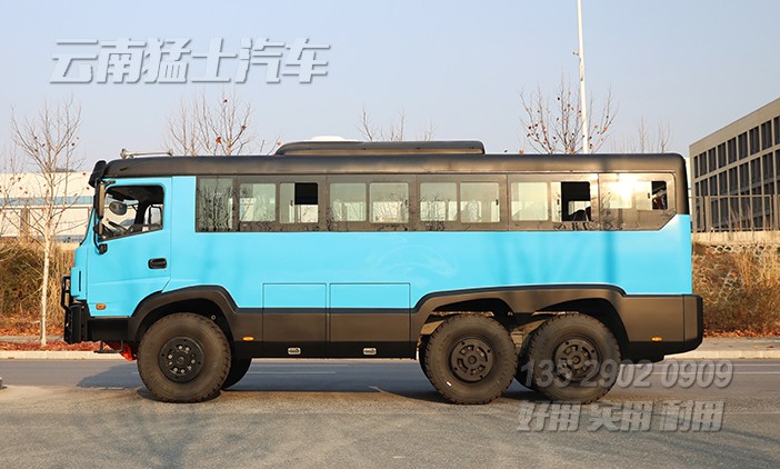 東風(fēng)六驅(qū)25座越野型客車采用康明斯210馬力發(fā)動(dòng)機(jī),專用的越野輪胎,涉水越障都經(jīng)過(guò)嚴(yán)格的檢測(cè),是一款符合越野標(biāo)準(zhǔn)的專用型客車。