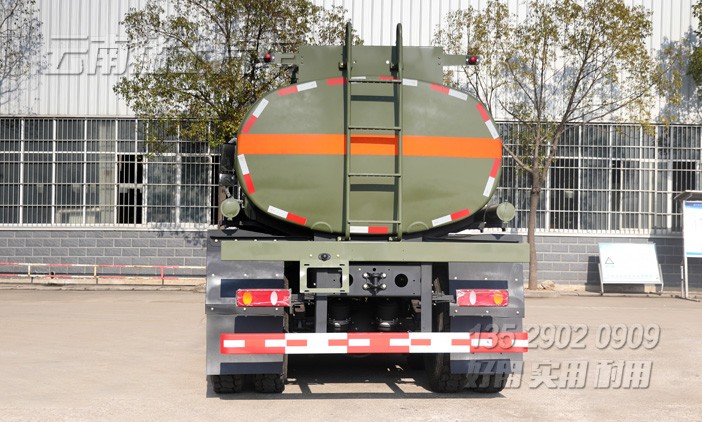 車尾帶有爬梯,可以通往罐體頂部。罐體頂部平臺(tái)兩側(cè)帶有折疊安全扶手,罐體頂部中間帶有注水口。