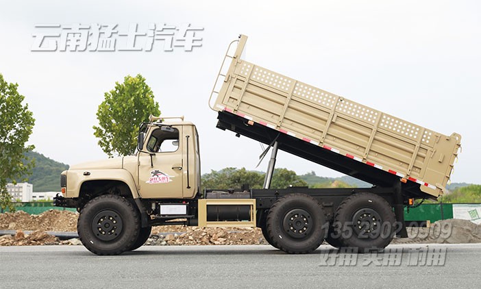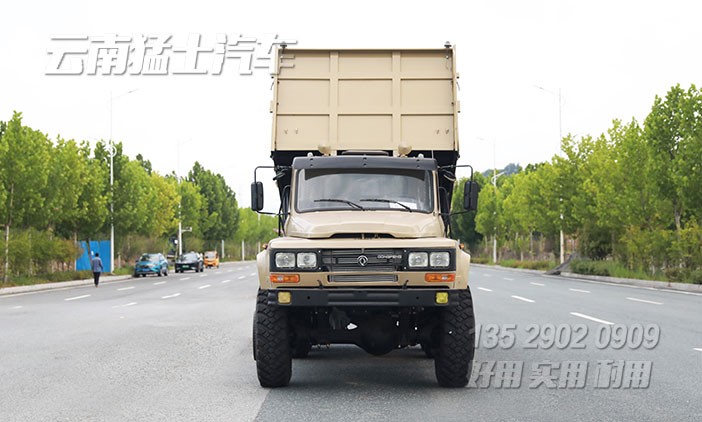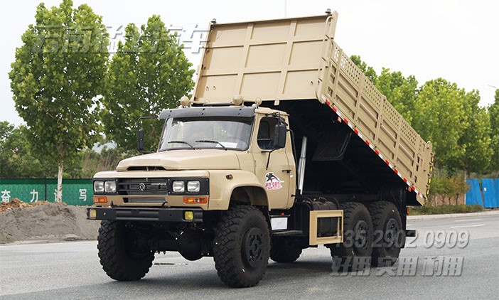 東風(fēng)六驅(qū)尖頭越野型自卸卡車(出口專用)采用康明斯190馬力發(fā)動(dòng)機(jī),底盤的越野性能突出,可以在惡劣路段下行駛,在越野狀態(tài)下可承載3.5噸貨物,在公路狀態(tài)下可承載6噸。