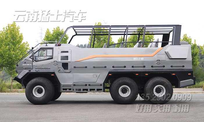 六驅沙漠景區(qū)沖浪車是一轉定制化的非公路人員運輸車,主要用于沙漠地區(qū)游客游玩使用,可乘坐18人。