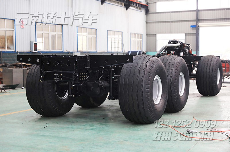 因沙漠車無(wú)法在公路上行駛,所以我們采用17.5米平板半掛車通過(guò)托運(yùn)的方式進(jìn)行運(yùn)輸。將輪胎、翻滾架打散,墊上枕木,用塑料薄膜纏繞固定在平板物流車上。