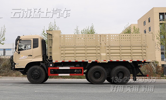 東風六驅25噸越野自卸卡車,采用260馬力發(fā)動機,分時全驅,舉升油缸前置,貨箱欄板加高。適合林區(qū)運輸木材,工地運輸砂土,礦區(qū)運輸礦石。