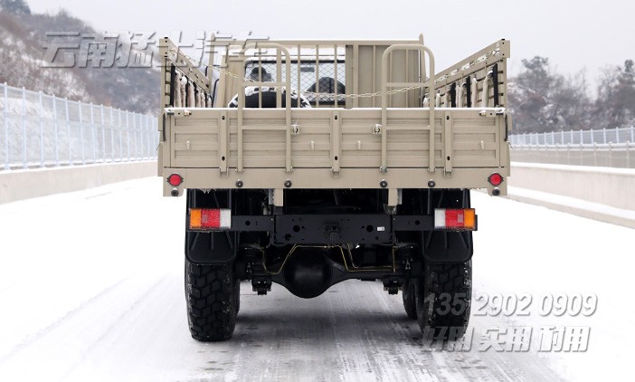 EQ2102G也叫EQ246,是一款東風(fēng)公司開發(fā)的全驅(qū)越野型卡車,三橋均采用驅(qū)動(dòng)橋,方便在惡劣路段下行駛。備胎安裝在駕駛室后方,配有專門的備胎升降架,方便在戶外獨(dú)自換胎。