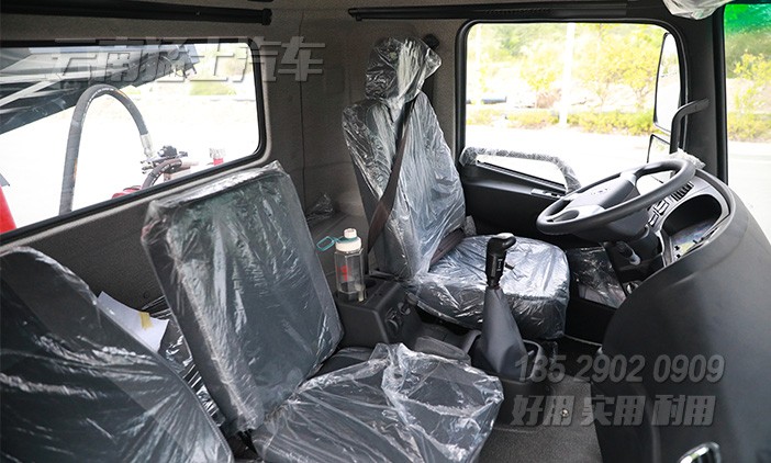 邊板田字格花紋,左右邊板可開(kāi)啟。備胎安裝在駕駛室與貨箱之間,有專用備胎升降機(jī)構(gòu)。