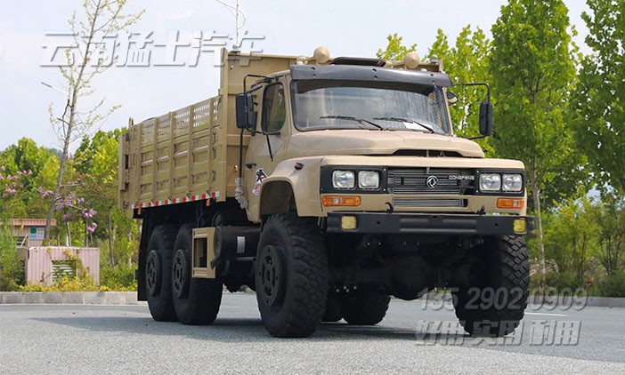 東風(fēng)六驅(qū)尖頭越野型自卸卡車(出口專用)采用康明斯190馬力發(fā)動(dòng)機(jī),底盤的越野性能突出,可以在惡劣路段下行駛,在越野狀態(tài)下可承載3.5噸貨物,在公路狀態(tài)下可承載6噸。