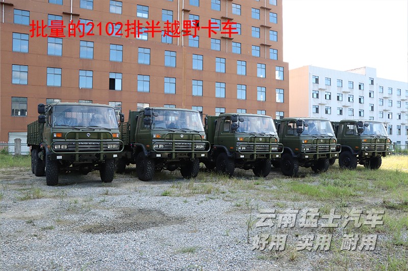 EQ2102系列是專門針對(duì)惡劣路況下行駛打造的一款六驅(qū)越野運(yùn)輸車。車輛配備190~210馬力發(fā)動(dòng)機(jī),手動(dòng)六檔變速器,前防護(hù)欄,12.5R20越野輪胎。駕駛室采用153款式,有著一排半盒雙排兩種規(guī)格。